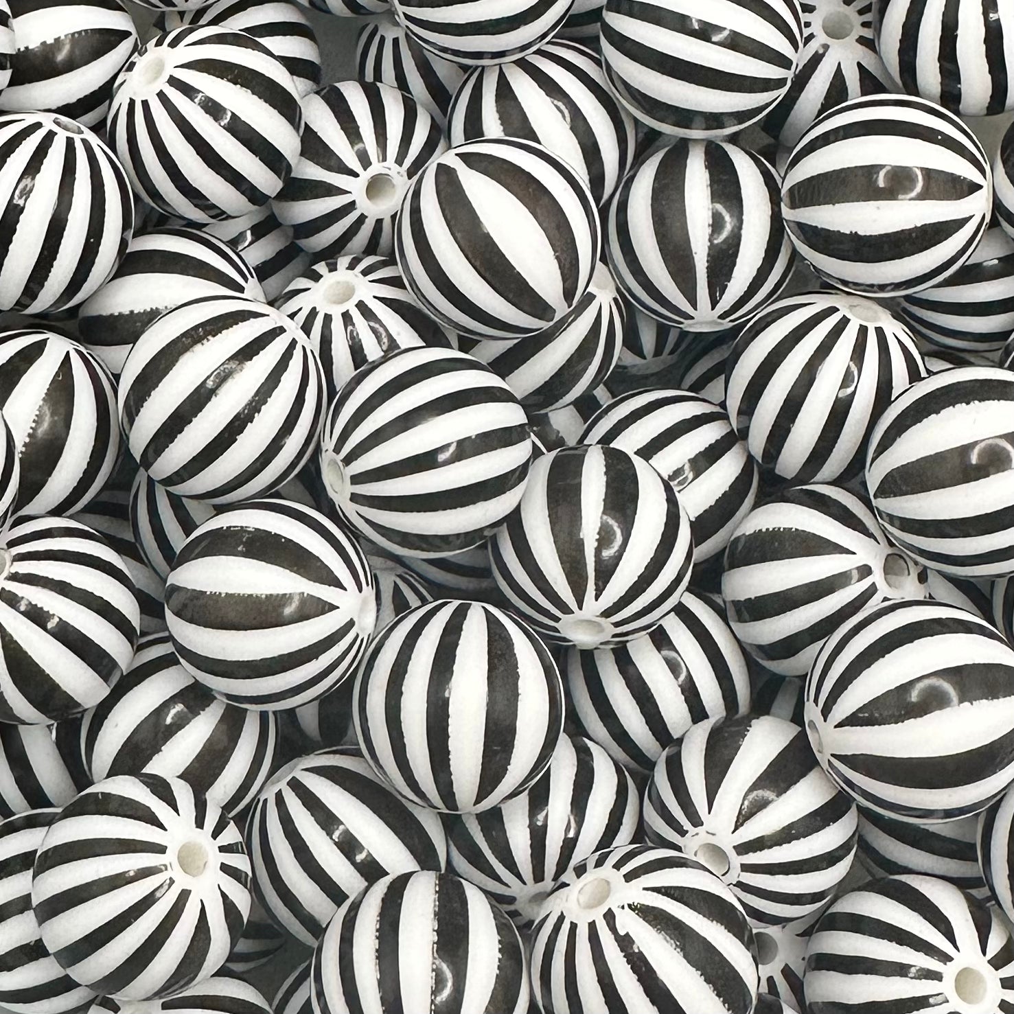 15mm round silicone bead with printed design, sold individually. Perfect for wristlets, freshie hangers or baby teething rings. Has hole through center of bead.