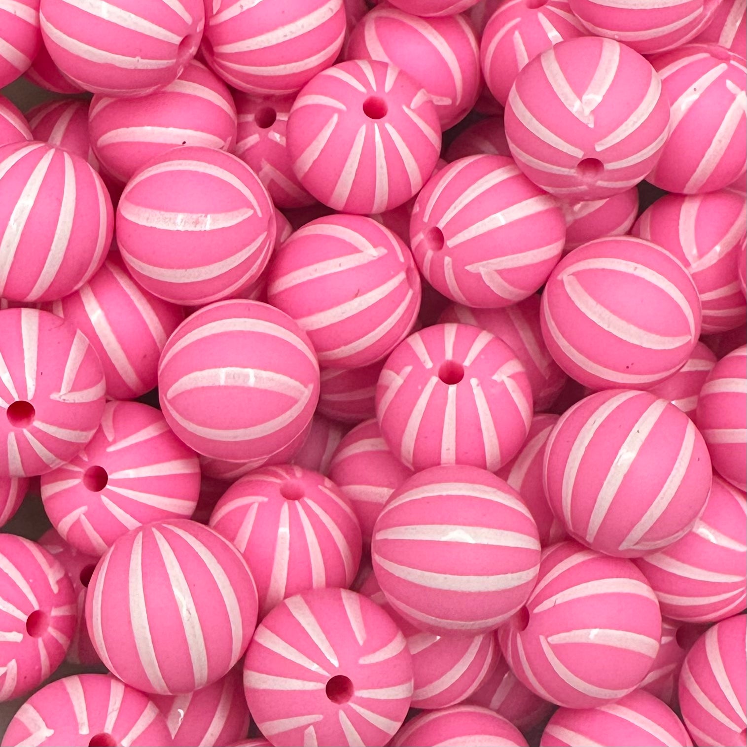 15mm round silicone bead with printed design, sold individually. Perfect for wristlets, freshie hangers or baby teething rings. Has hole through center of bead.