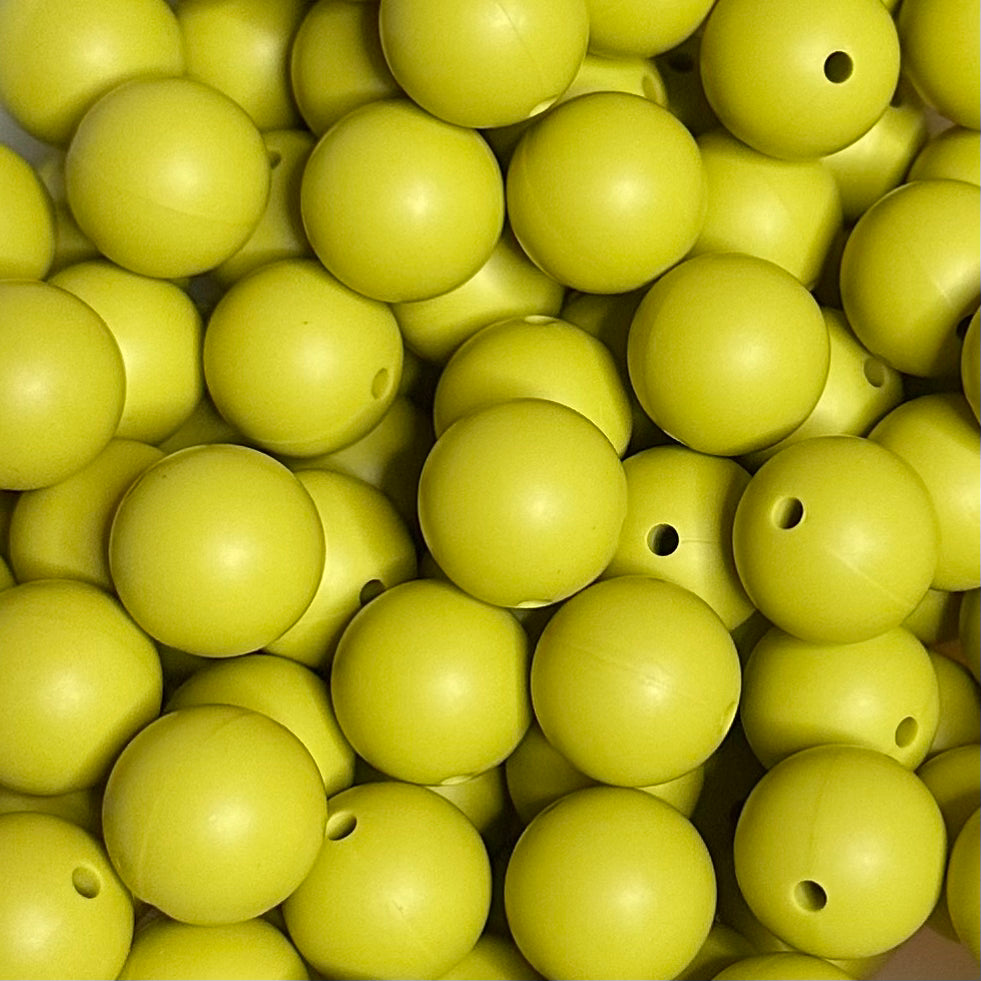 15mm round silicone bead, sold individually. Perfect for wristlets, freshie hangers or baby teething rings. 33 colors to choose from. Has hole through center of bead.