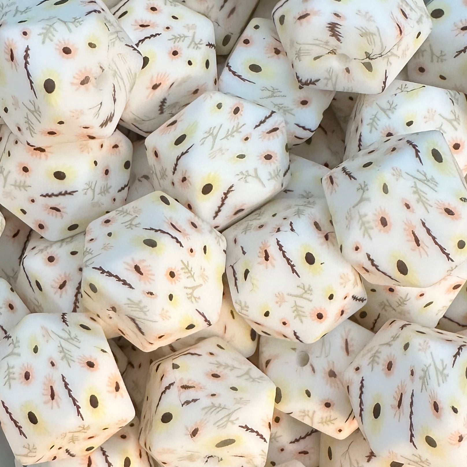 17mm Printed Hexagon Silicone Bead, Daisy Sprinkles