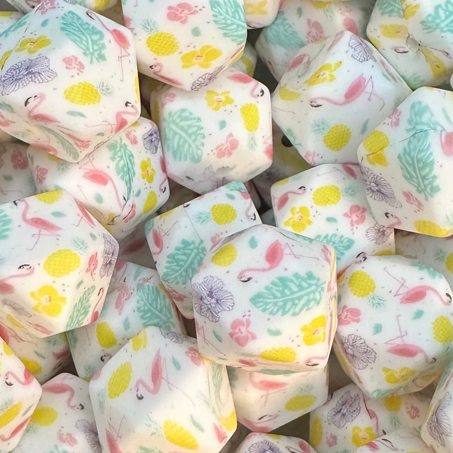 17mm Printed Hexagon Silicone Bead, Flamingo