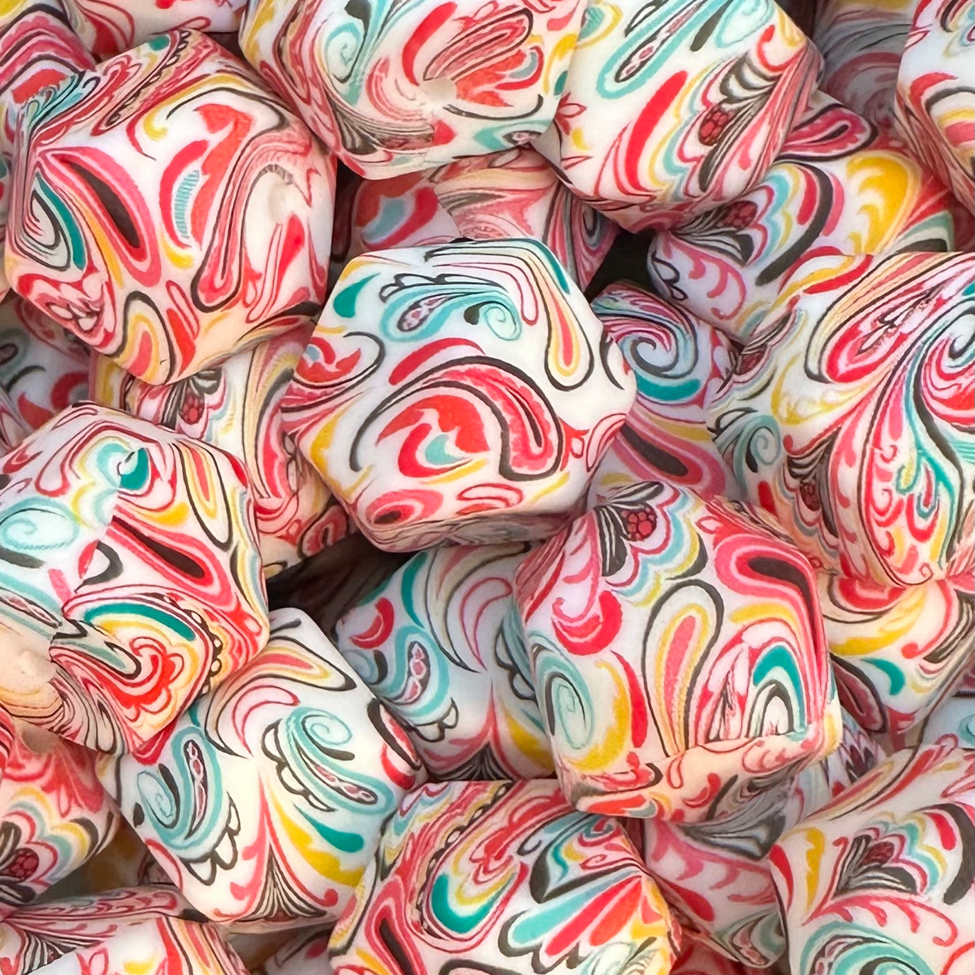 17mm Hexagon silicone bead with printed design, sold individually. Perfect for accenting wristlets, freshie hangers or baby teething rings. Has hole through center of bead.