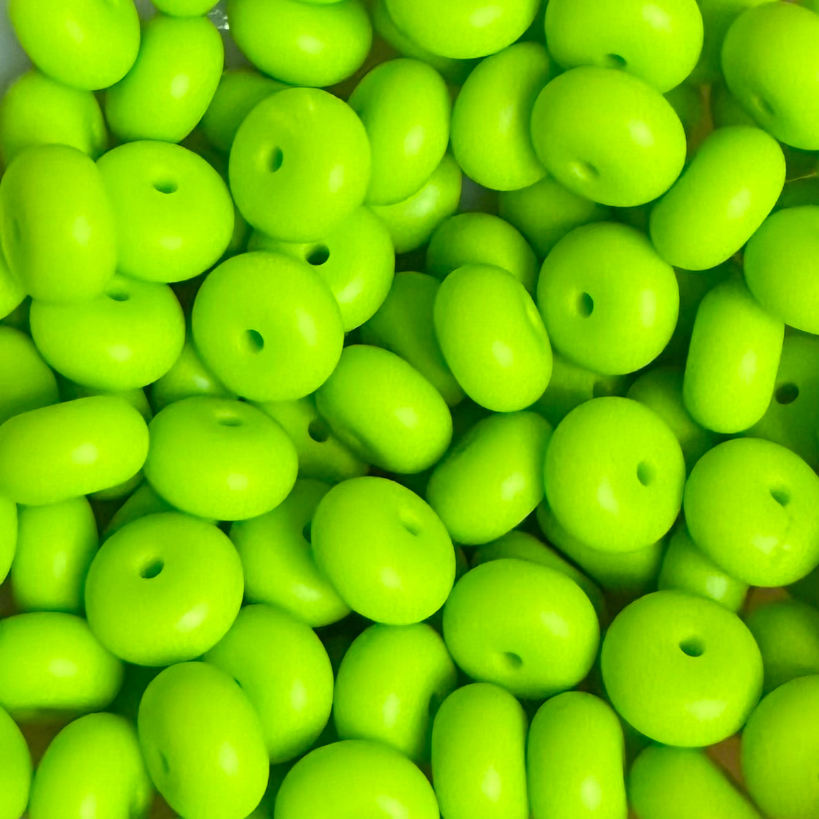 15mm abacus shaped silicone bead, sold individually. Perfect for wristlets, freshie hangers or baby teething rings. 33 colors to choose from. Has hole through center of bead.
