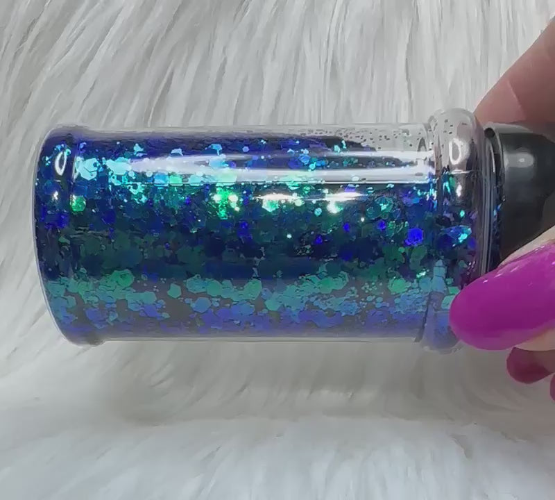 Blue to aqua chameleon glitter.