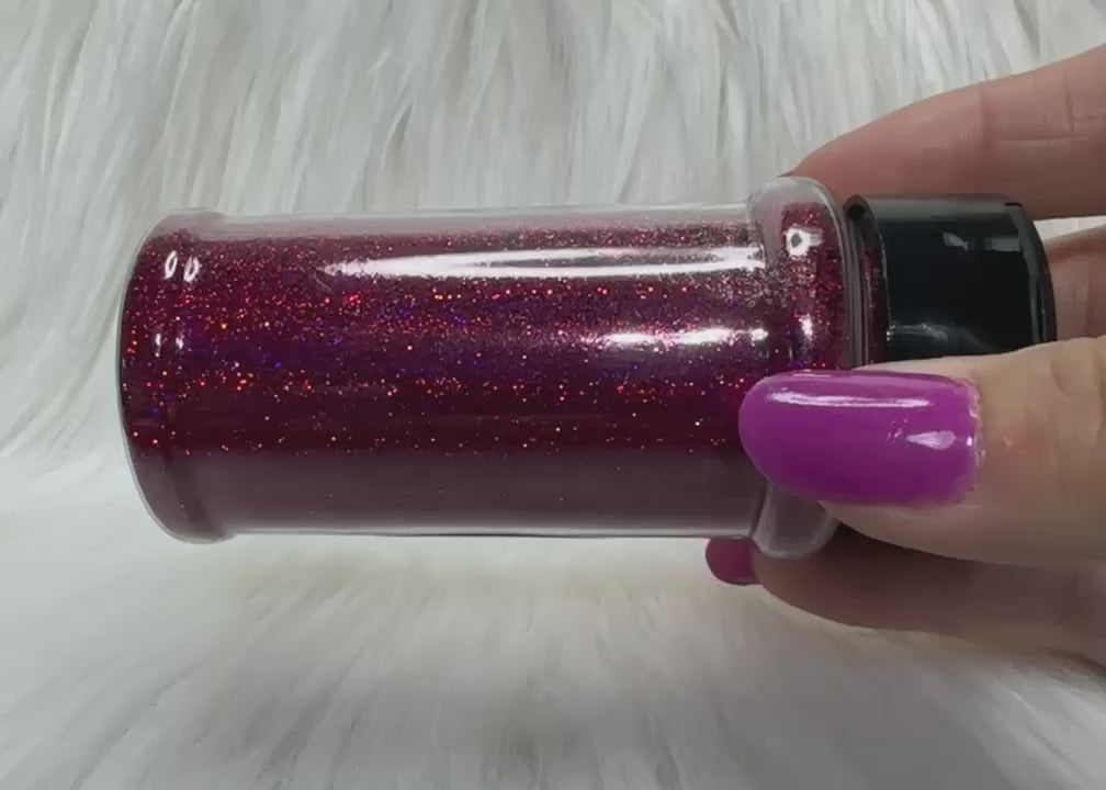 Deep red glitter with red holographic sparkle.