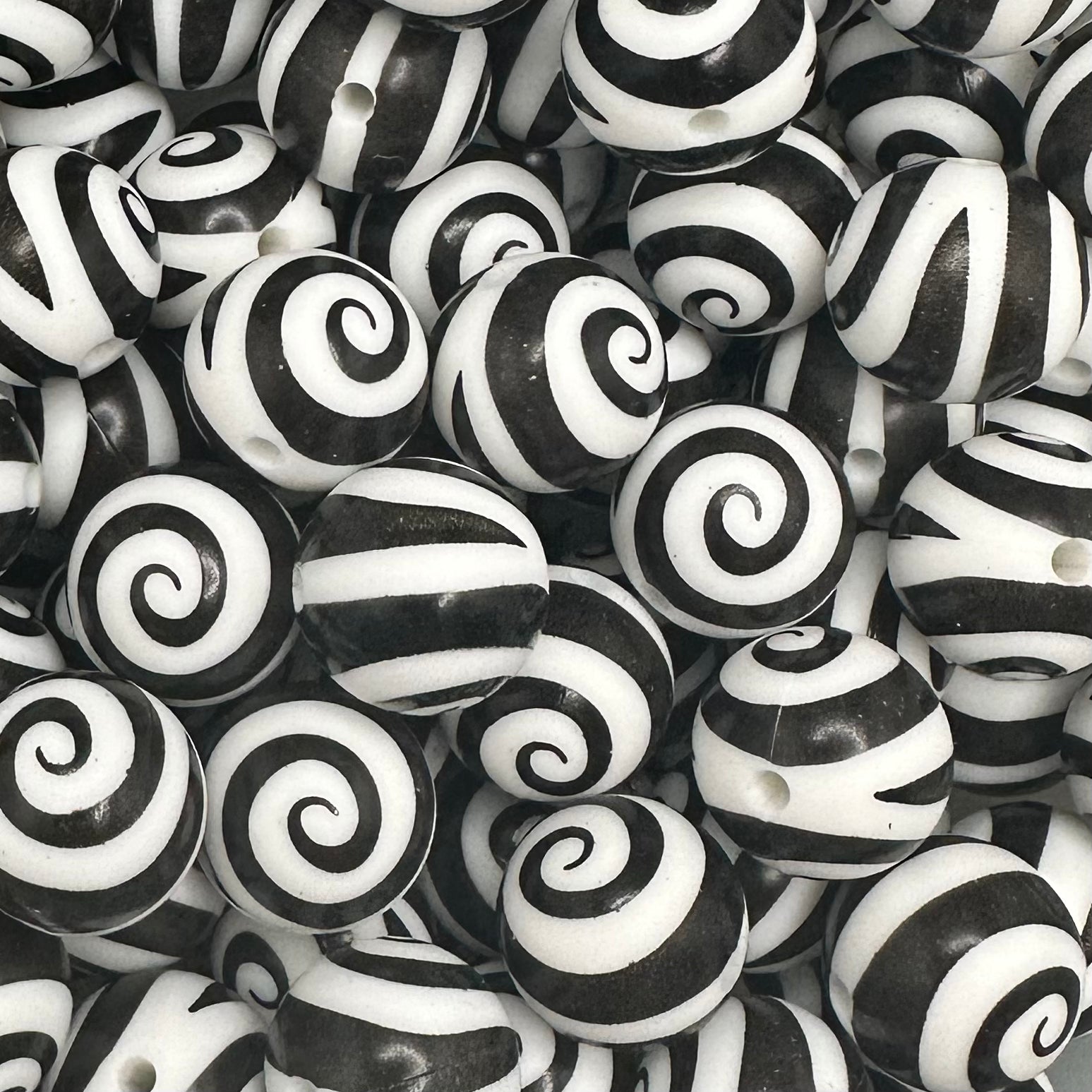 15mm round silicone bead with printed design, sold individually. Perfect for wristlets, freshie hangers or baby teething rings. Has hole through center of bead.