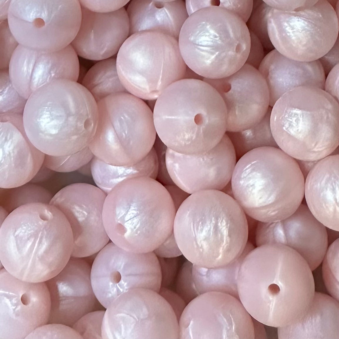 15 mm Silicone Bead, Metallic Baby Pink