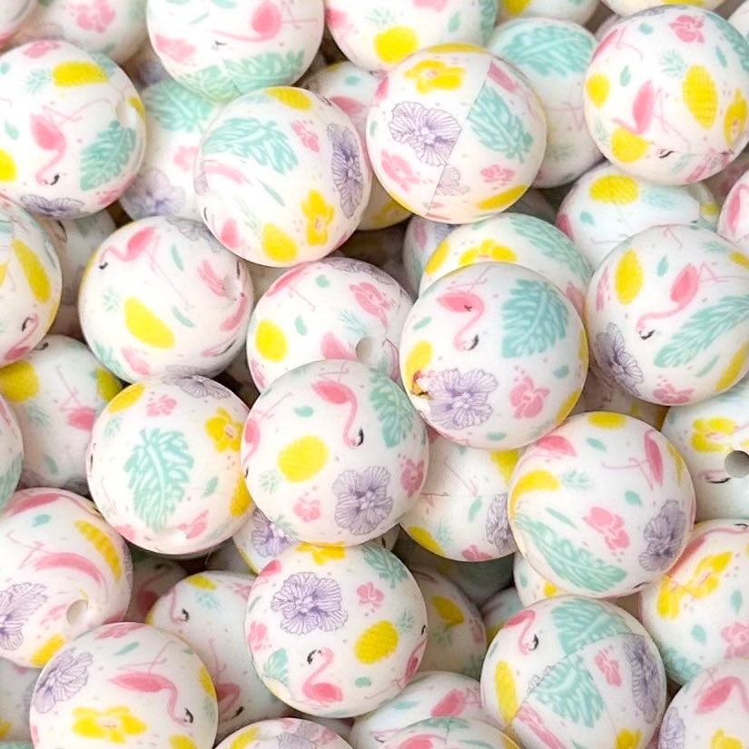 15mm round silicone bead with printed design, sold individually. Perfect for wristlets, freshie hangers or baby teething rings. Has hole through center of bead.