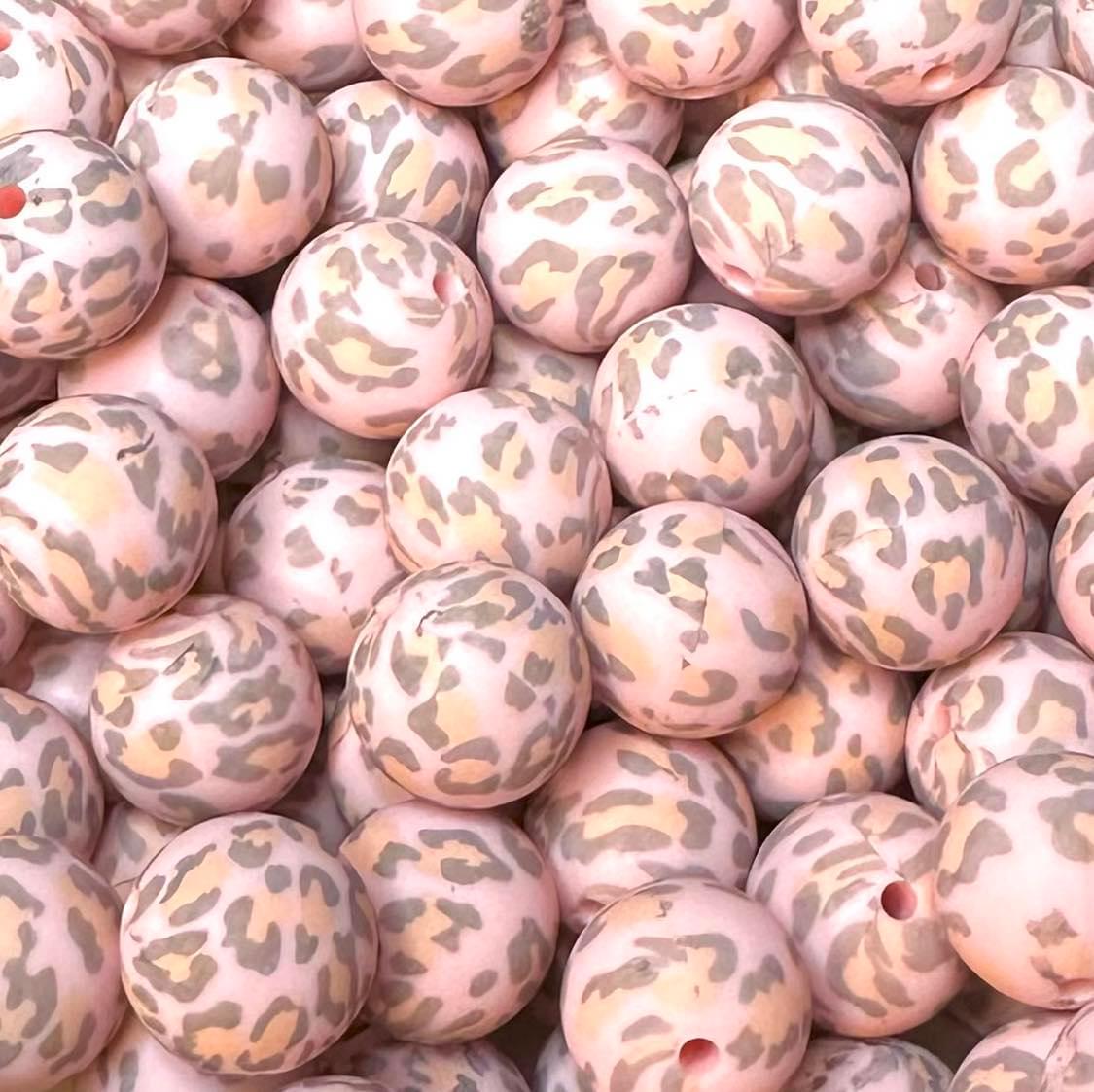 15 mm Printed Silicone Bead, Pink Leopard
