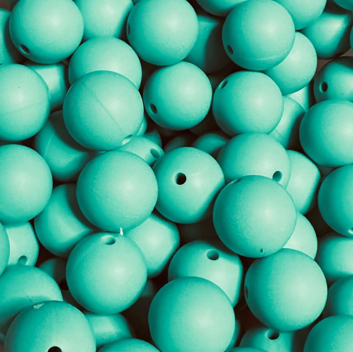 15mm round silicone bead, sold individually. Perfect for wristlets, freshie hangers or baby teething rings. 33 colors to choose from. Has hole through center of bead.