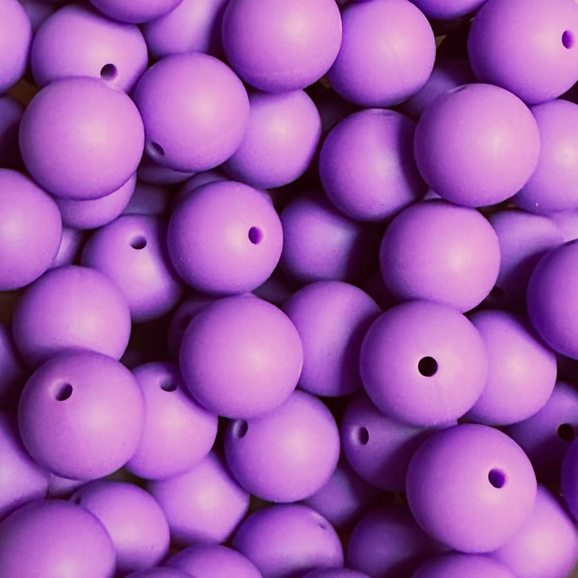 15mm round silicone bead, sold individually. Perfect for wristlets, freshie hangers or baby teething rings. 33 colors to choose from. Has hole through center of bead.