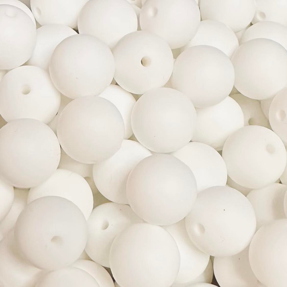 15mm round silicone bead, sold individually. Perfect for wristlets, freshie hangers or baby teething rings. 33 colors to choose from. Has hole through center of bead.