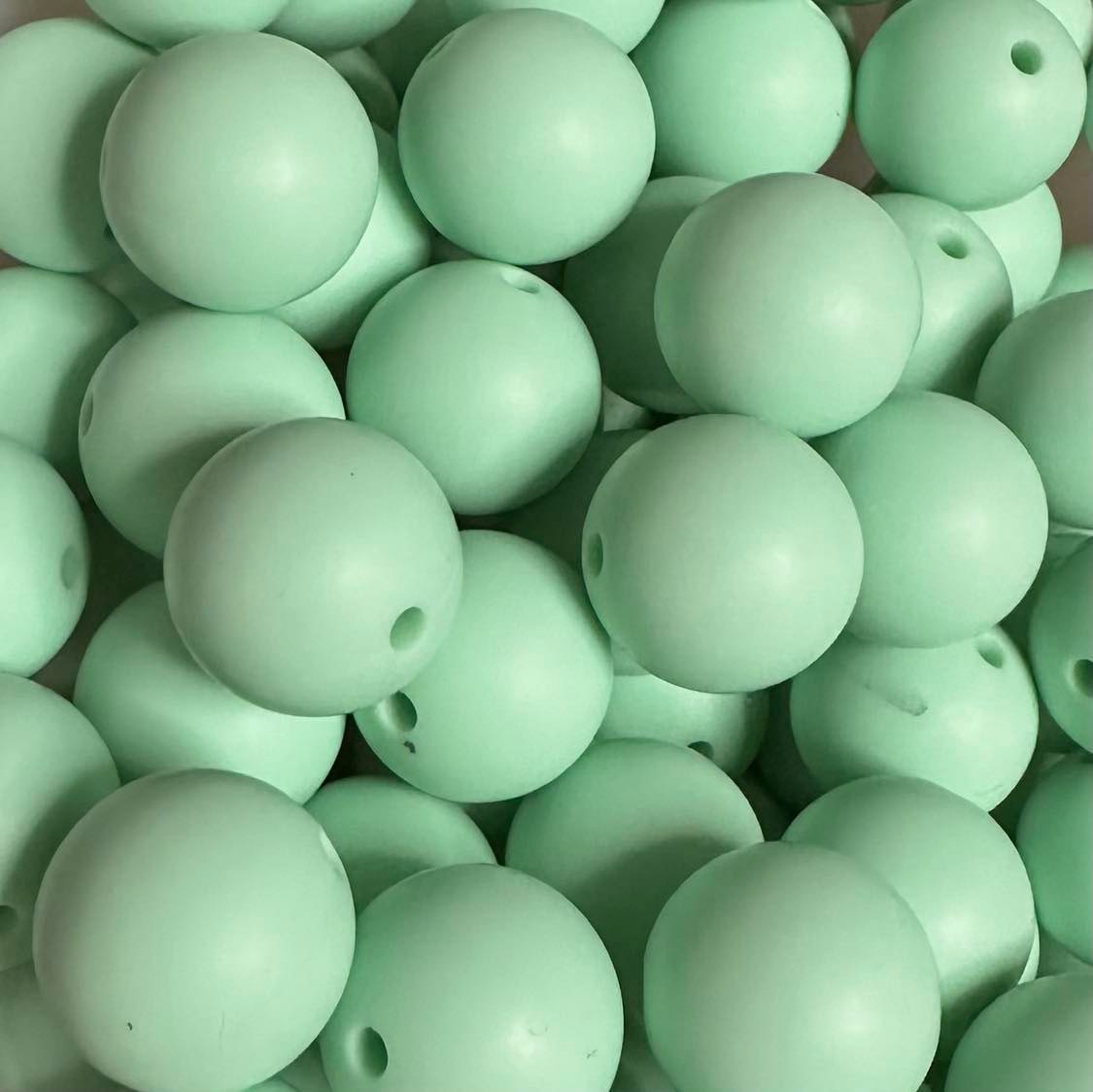 15mm round silicone bead, sold individually. Perfect for wristlets, freshie hangers or baby teething rings. 33 colors to choose from. Has hole through center of bead.