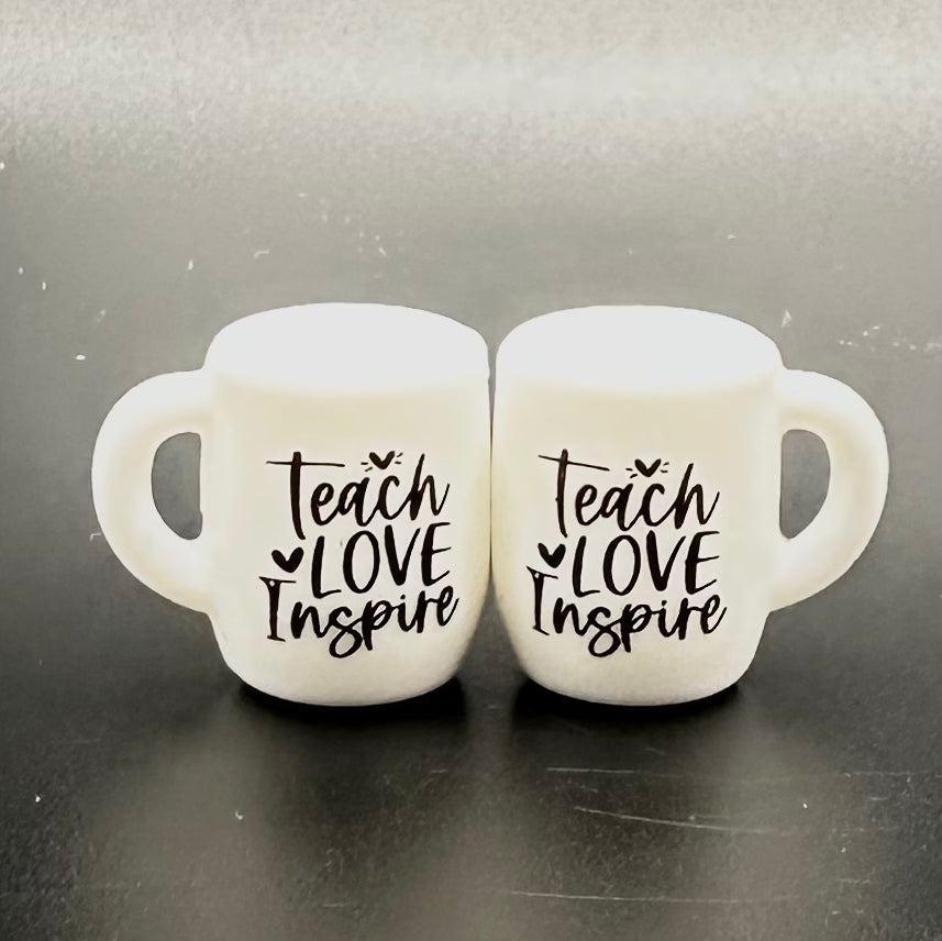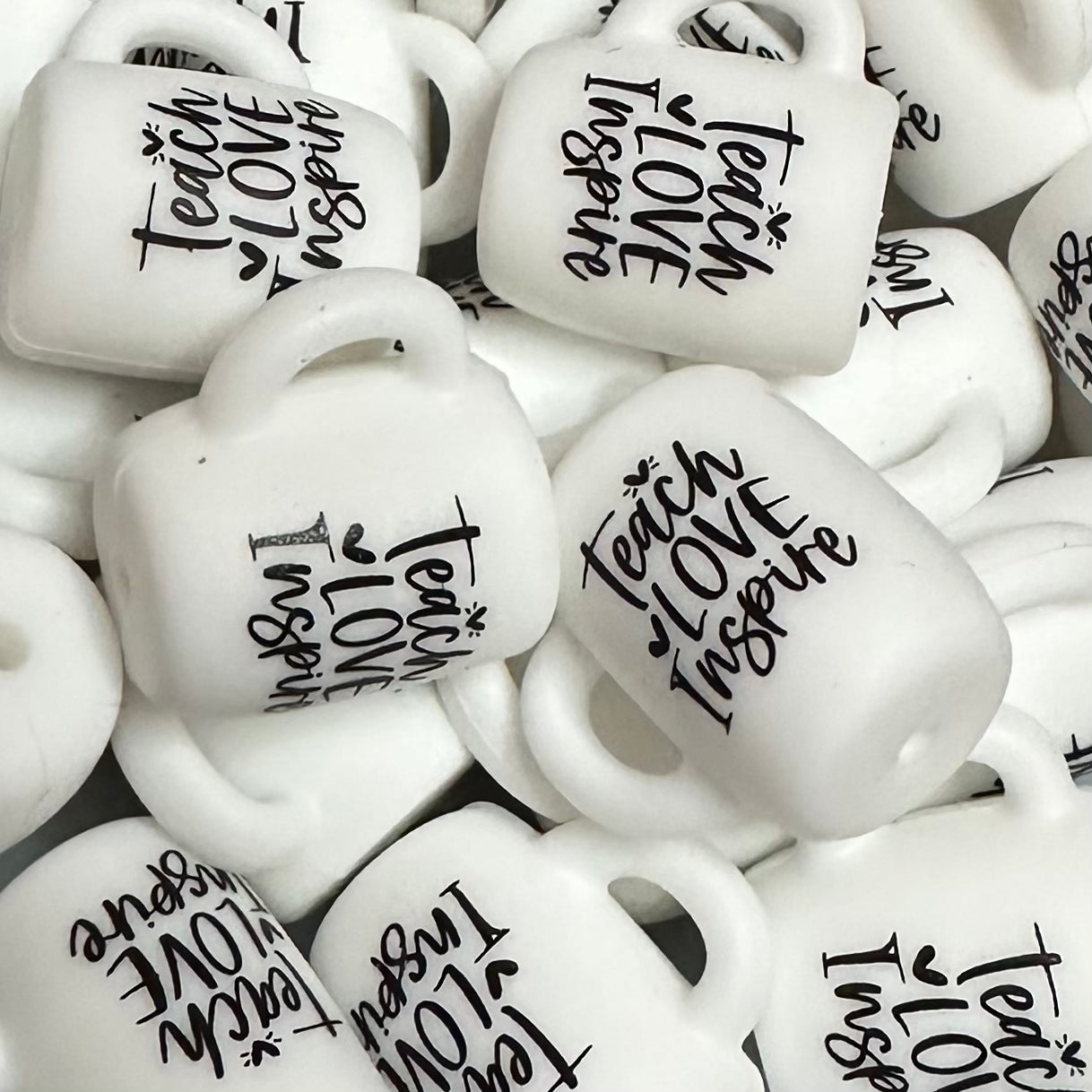 Focal Bead, Silicone Coffee Cup Bead, Teach, Love, Inspire