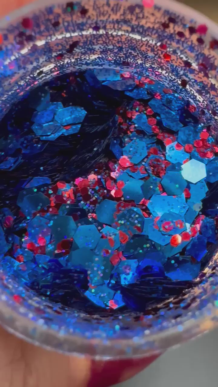 Royal blue, raspberry and gold mixed glitter with metallic sparkle.
