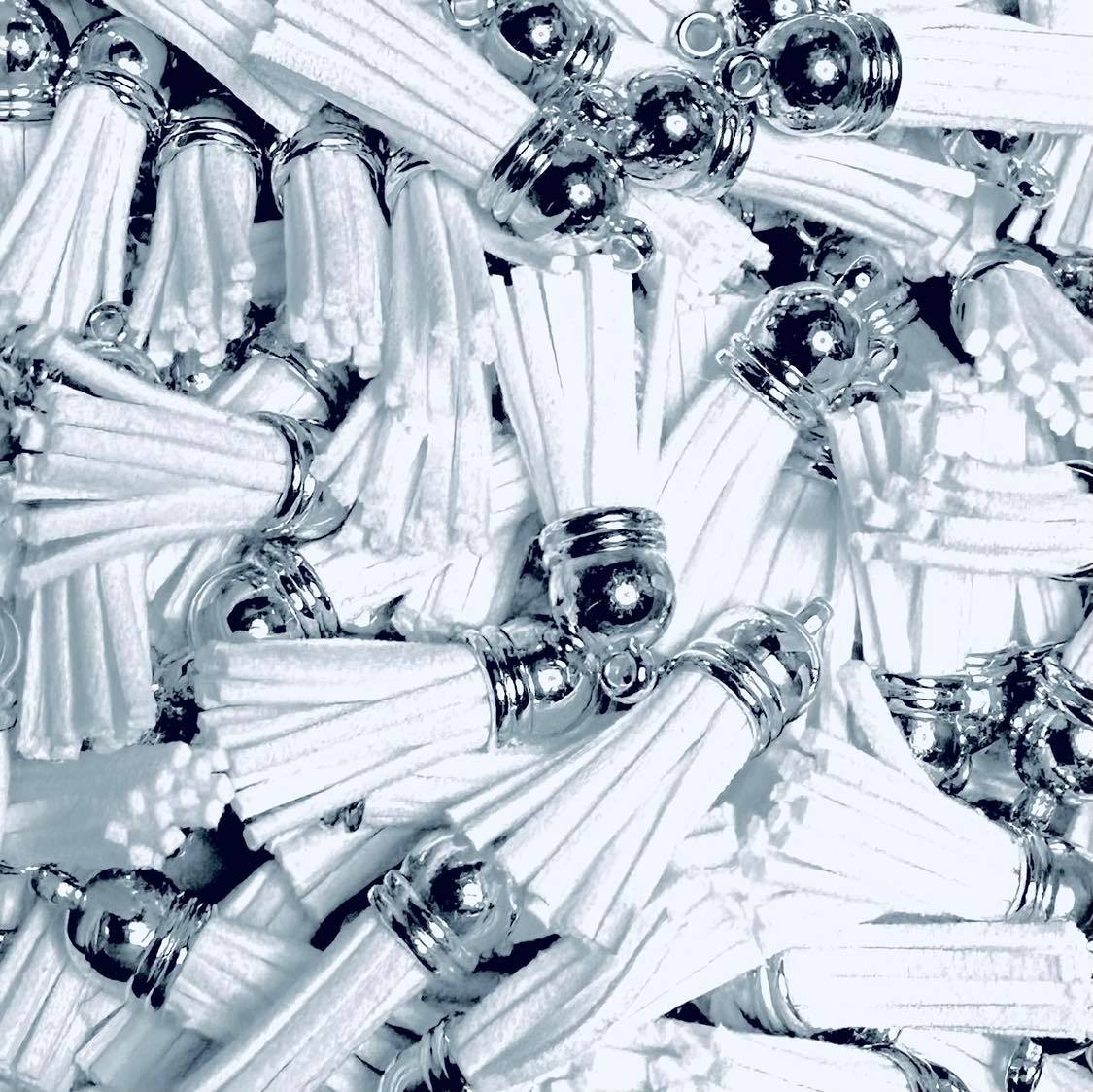 Leather Tassels, 1" in length, with silver caps in various colors. Perfect for jewelry making.