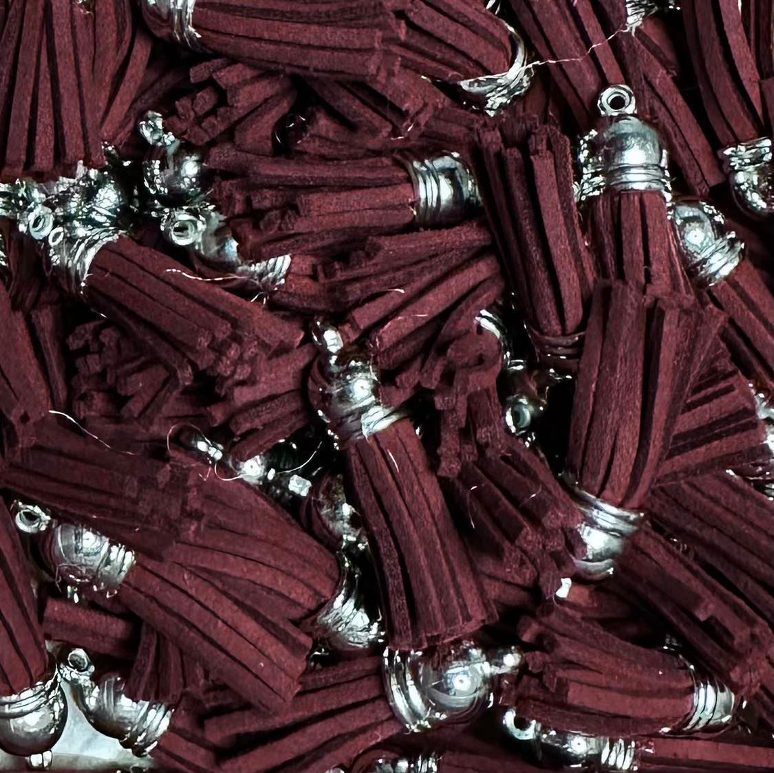 Leather Tassels, 1" in length, with silver caps in various colors. Perfect for jewelry making.