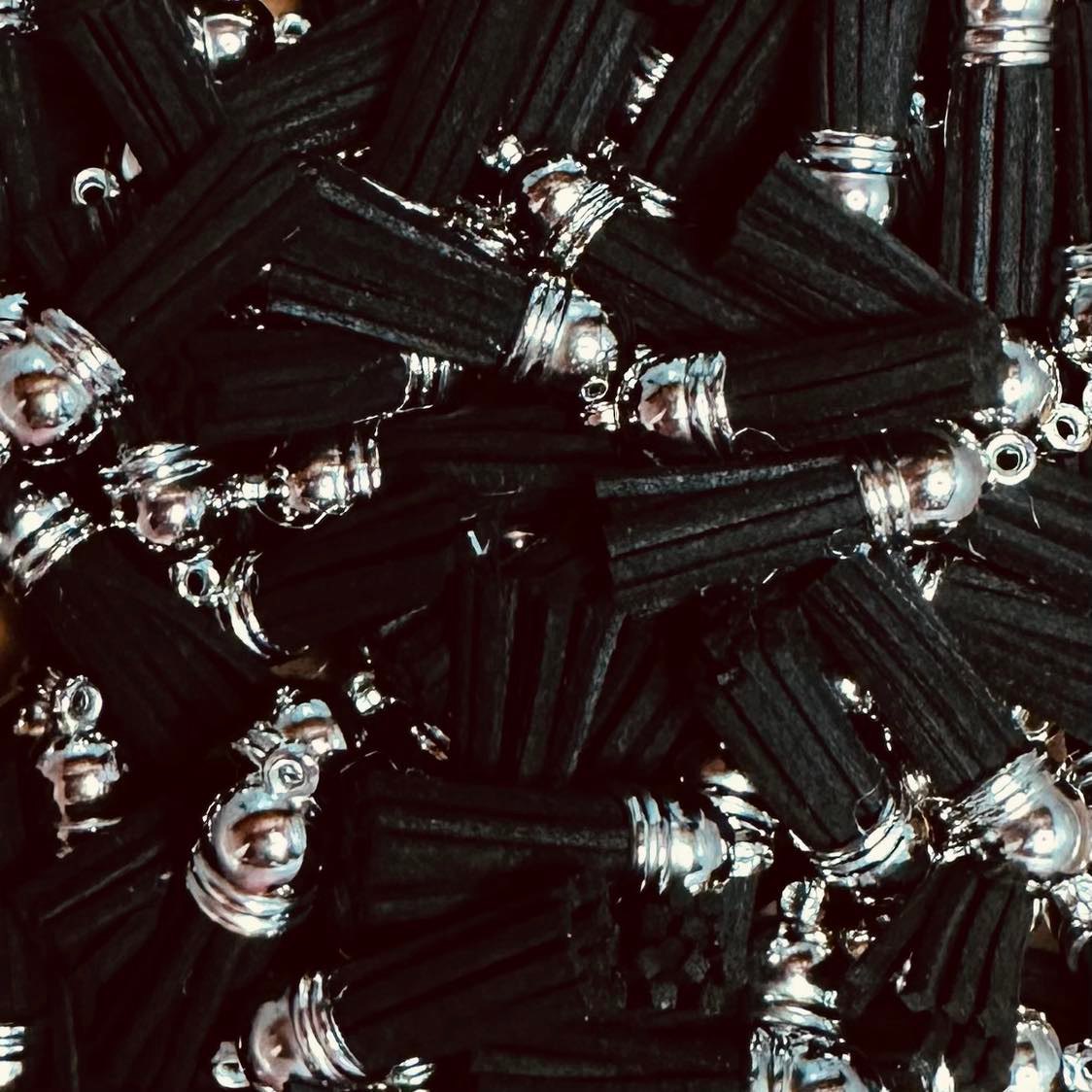 Leather Tassels, 1" in length, with silver caps in various colors. Perfect for jewelry making.
