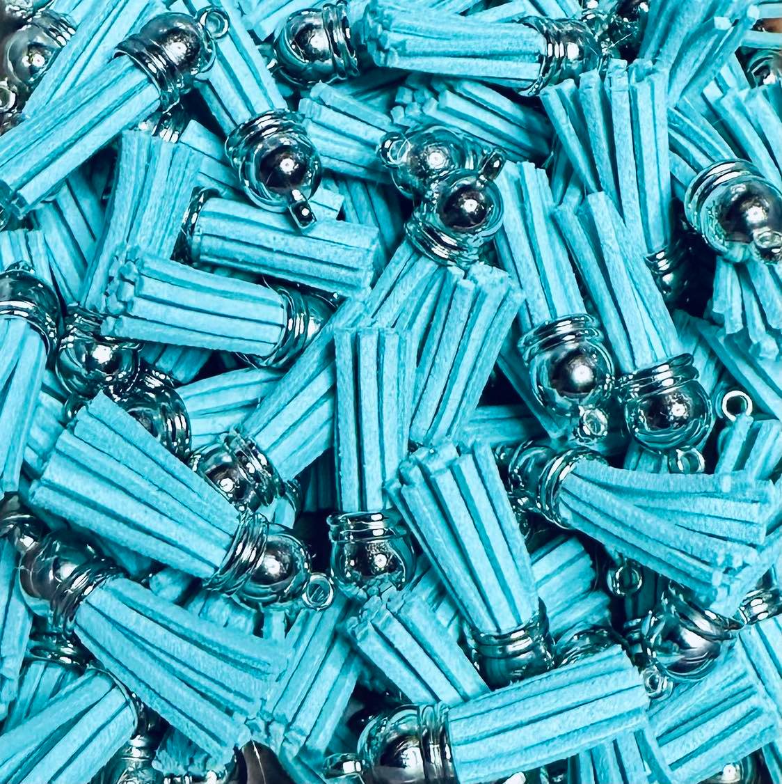 Leather Tassels, 1" in length, with silver caps in various colors. Perfect for jewelry making.