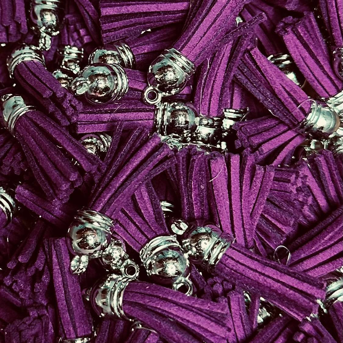 Leather Tassels, 1" in length, with silver caps in various colors. Perfect for jewelry making.