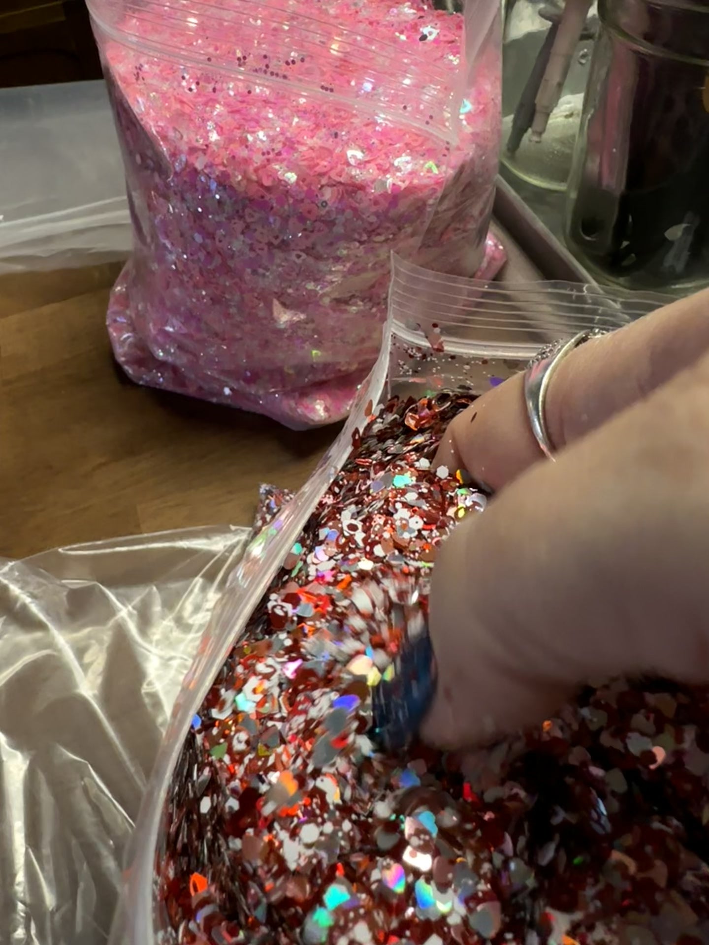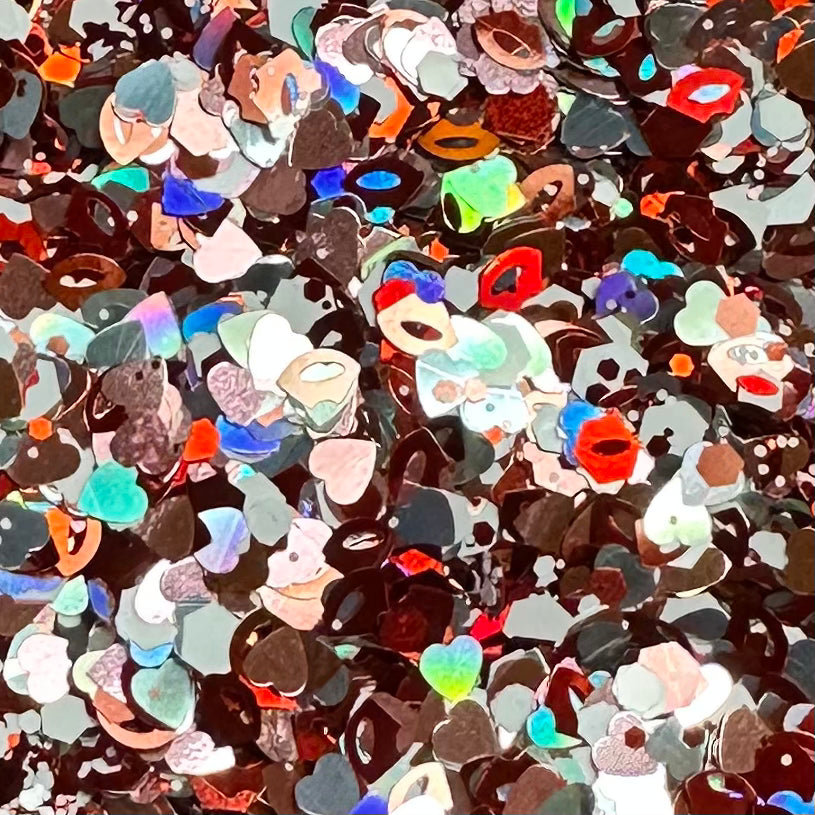 Red and white mix with red lips and white hearts and a rainbow holographic sparkle. Perfect for Valentines Day or that special project year round!