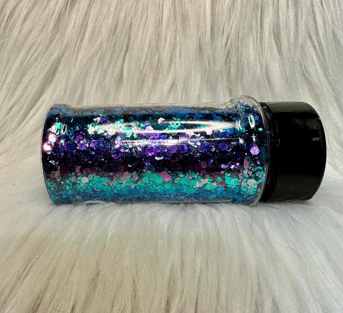Purple to blue chameleon glitter.