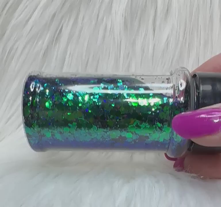 Blue to green chameleon glitter.