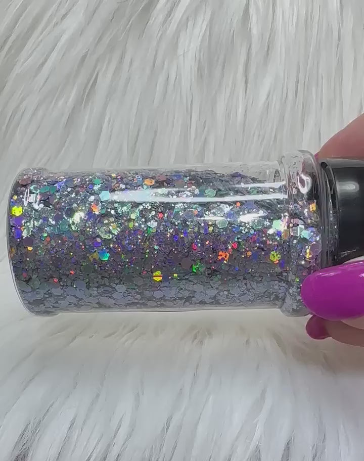 Silver to rainbow chameleon glitter.